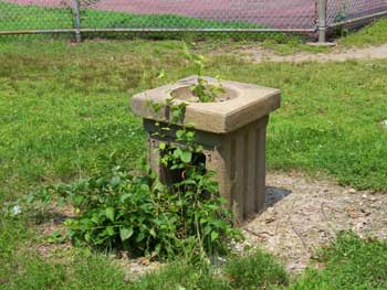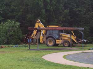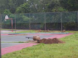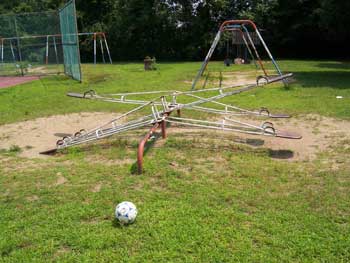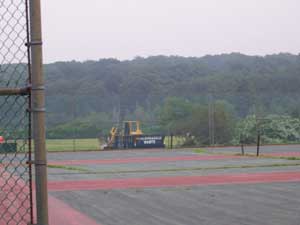 On Monday, July 10, 2006, a bulldozer appeared in the park. On Tuesday some trees were felled, a plastic barrier was extended across a small portion of the fields and what was left of the playground equipment was knocked to the ground. On Wednesday, a few workers appeared in the area and more equipment was brought in and some debris was removed. In the afternoon a chance meeting with the architect revealed that only a portion of the funds originally promised is left, which will be used on sports fields and a walk path. |